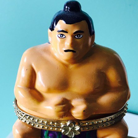 Our first assignment for the class was to bring in an object and talk about it as it was passed around the room, as a way of introducing ourselves. I brought a tiny porcelain figure of a sumo wrestler that I had just bought for a dollar, as a symbol of the feeling that I had to fight my way through grad school and the world at large in spite of my own fragilities and lack of self-esteem (I didn’t say any of this, of course. I said “I have a tiny sumo wrestler in my heart,” and everyone chuckled politely).