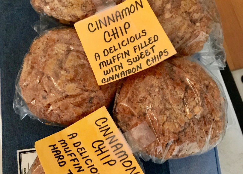 I have three cinnamon chip muffins left.