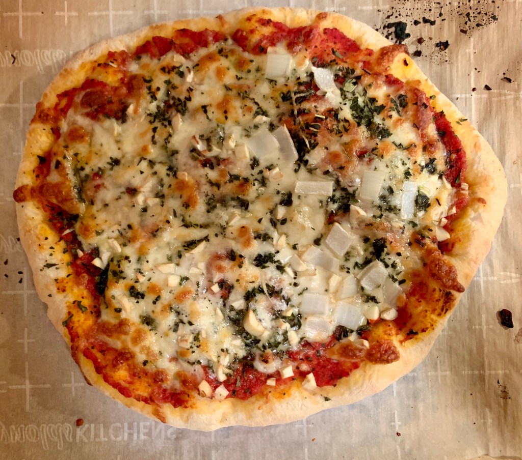 So to make a New York style thin crust pizza, we made a dough that had to rest overnight. But it was worth the wait!