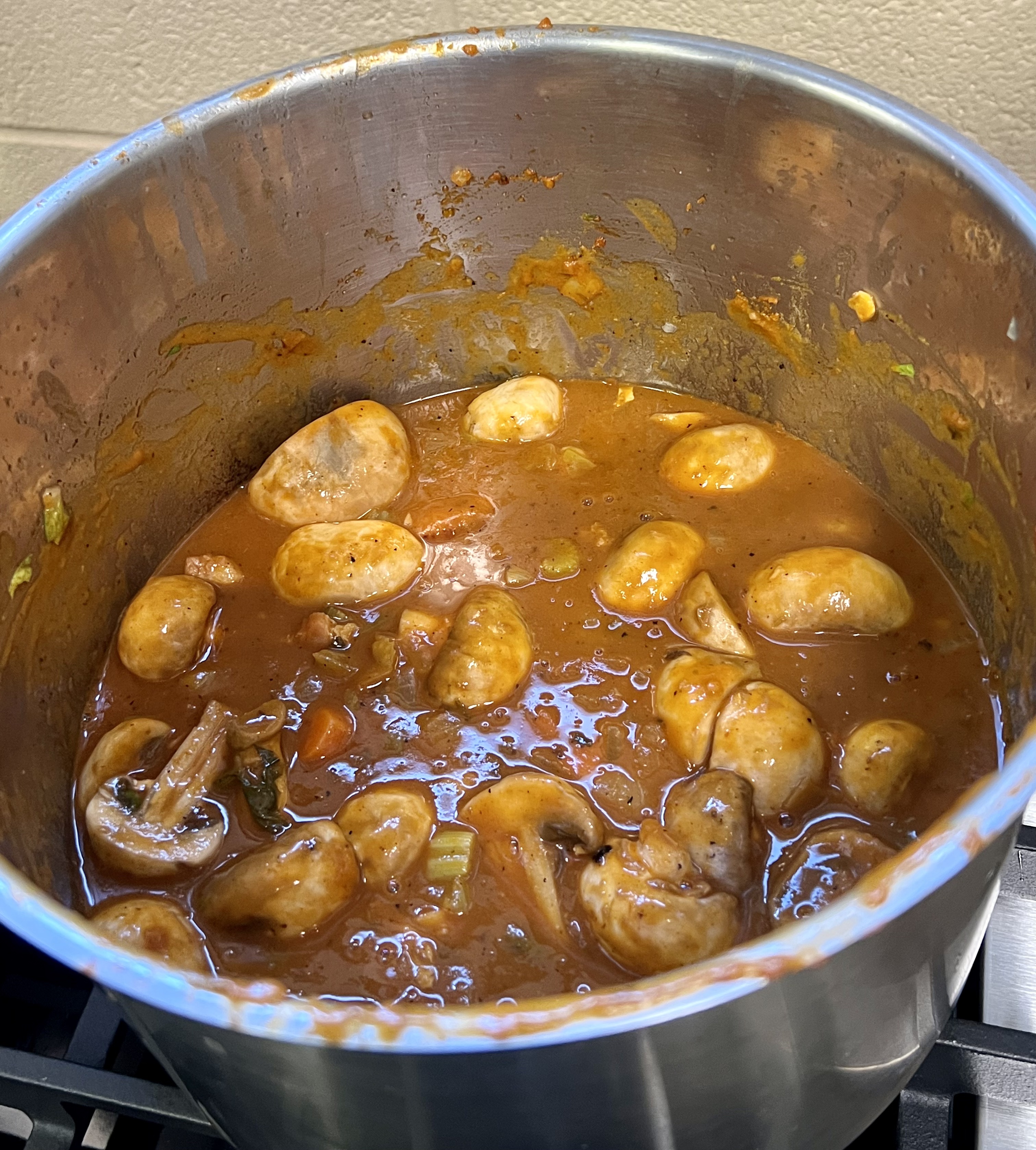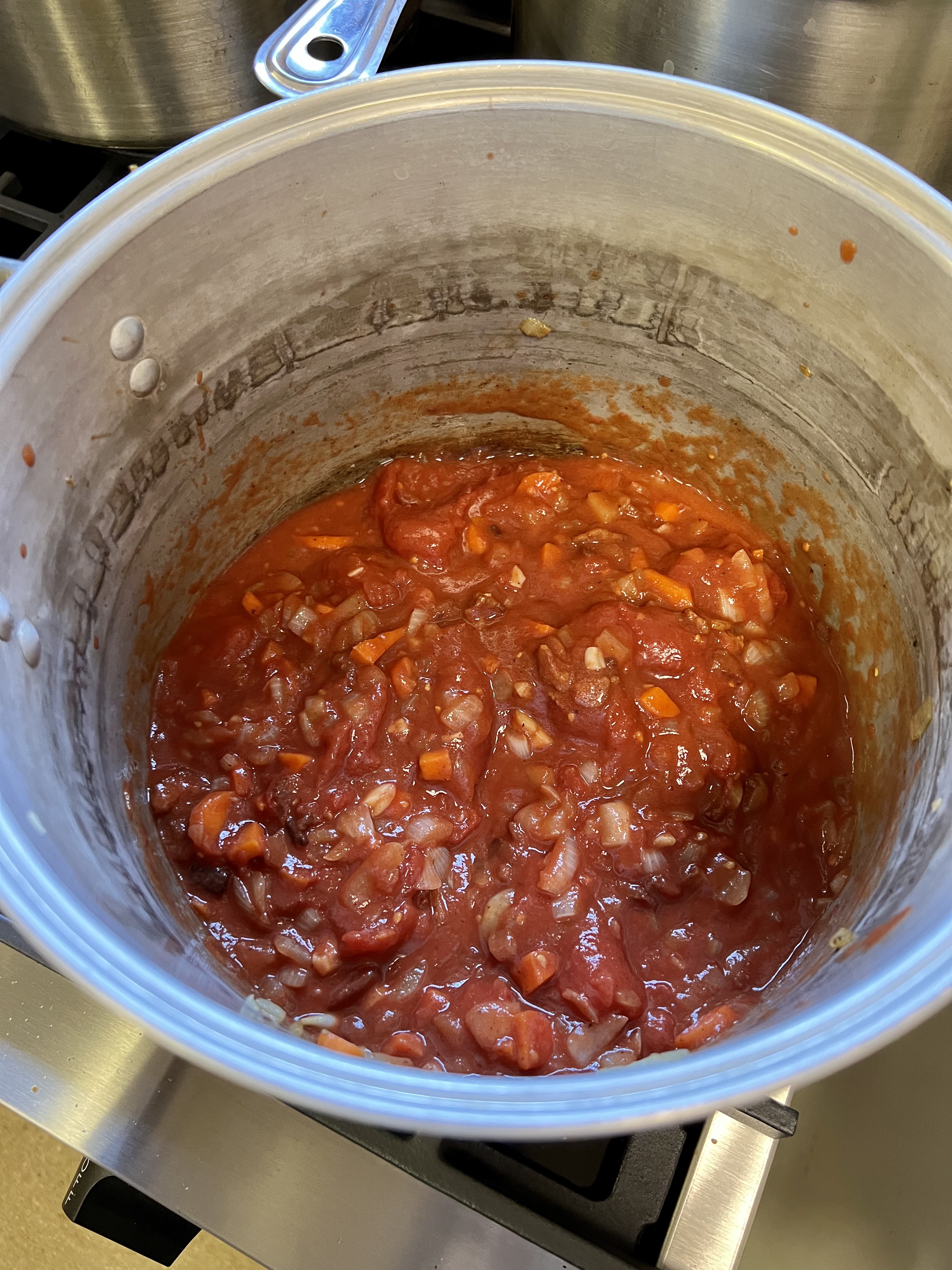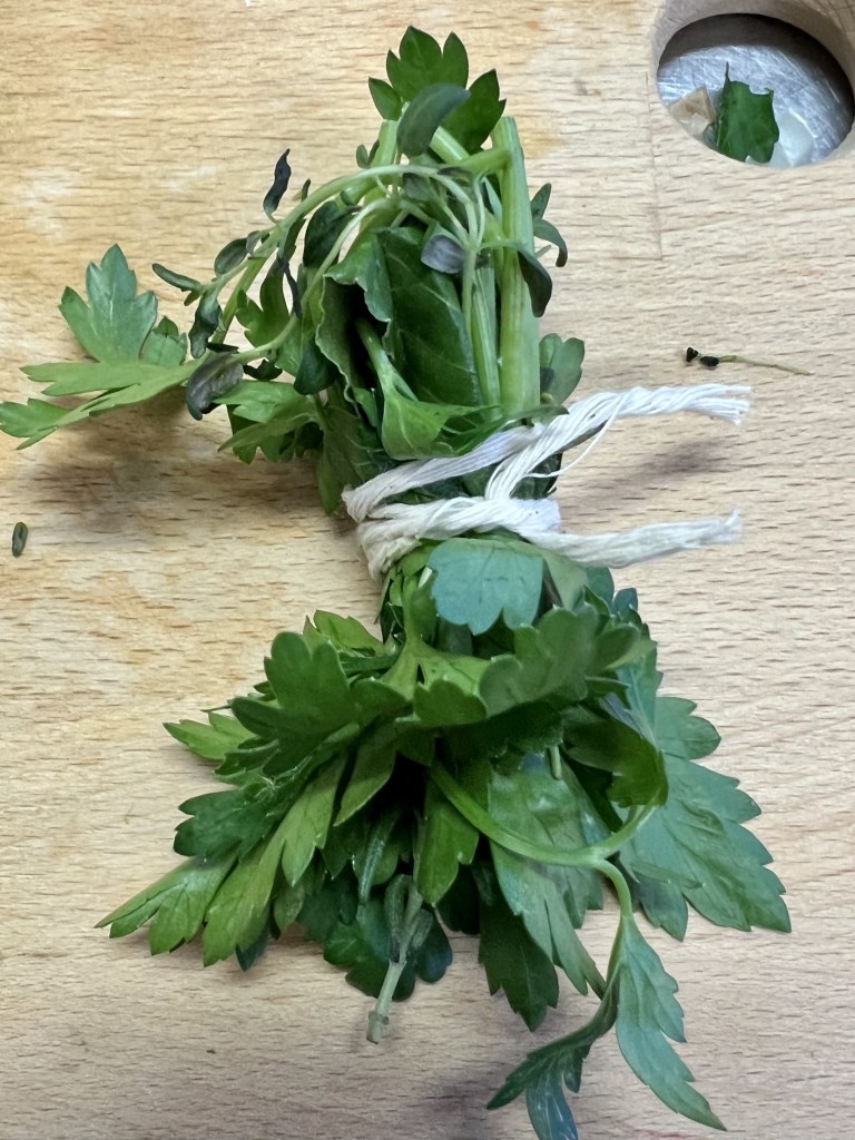 Since our tomato sauce recipe was is the true French recipe for Sauce Tomate, it didn’t include any Italian herbs like you would expect to find in a tomato sauce, just a roux and tomatoes, carrot and onion, with a little salt and sugar at the end.